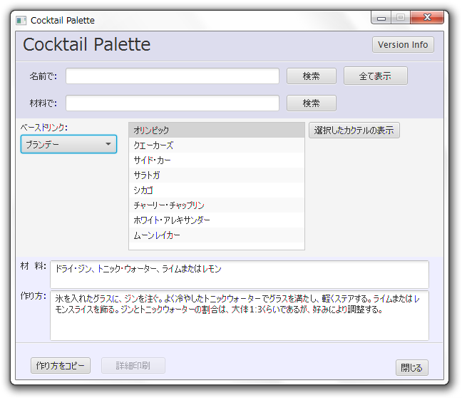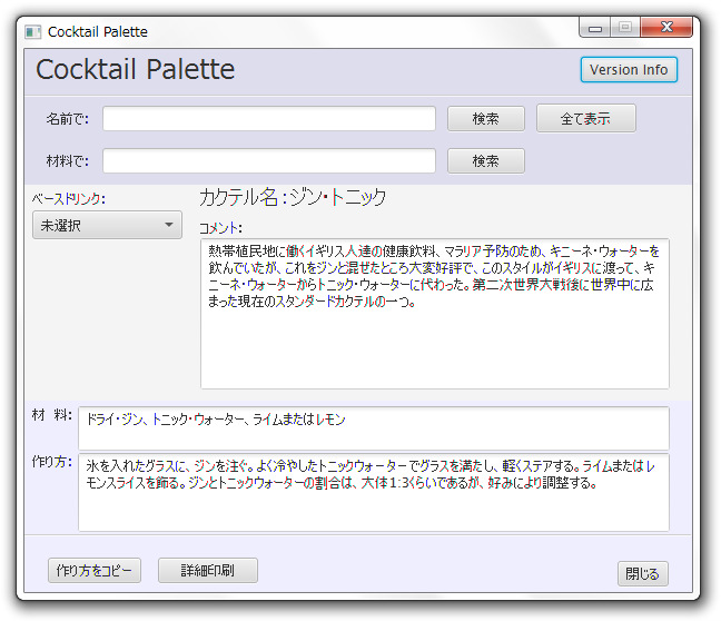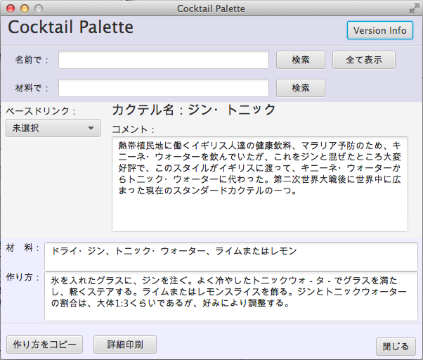 バージョン、コピーライト表示画面